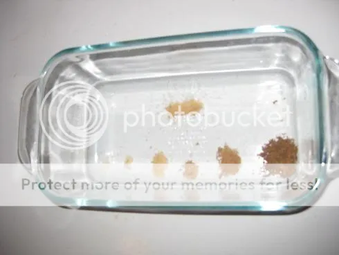 The other six other piles are from 100g of the same MHRB. I did five pulls total on this extraction. The first pull was the pure white (bottom, very far left, hard to see, about 20mg). The second pull was the darkest (far right). The third pull was the next darkest (fifth along the bottom). The fourth pull was the third along the bottom. The fifth pull was the fourth along the bottom. So from the second to fourth pulls, the pulls were getting progressively lighter and then the fifth pull then went a bit darker again.