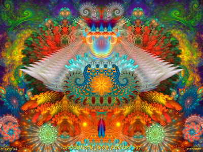 You familiar with Alex Grey? He's done a lot of stuff that is directly influenced by ayahuasca... Www.alexgrey.com or www.cosm.org. Also check out his wife Allyson Grey- her "chaos/order" paintings bear a striking resemblance to stuff I've seen during very intense DMT experiences. ...and if you don't mind, I'd like to direct you to my page, www,hyperspacestudios.com. Click Galleries, then the Guy Aitchison galleries. The Lightform stuff is the most directly DMT influenced. Working on more as we speak. Also try looking up: Xavi David Heskin Luke Brown Good stuff, and they no doubt are rich with art links... I agree that the art page here lacks variety. The overwhelming majority are fantasy works by the likes of Michael Whelan- all excellent stuff but not what you might consider behind-the-eyelids psychedelic imagery. That kind of art can be found throughout the site- but it would be great to see all the trippiest stuff gathered at one page.