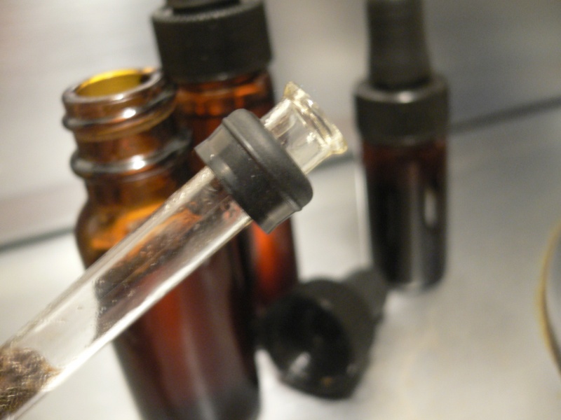 SWIM's trying to think of a decent and safe method of preventing oxidation of the screen and keeping the piece thoroughly clean. His current idea is to keep the piece in a dropper bottle (as the dropper, in it's normal place with screw cap and dropper bulb) filled with anhydrous IPA. SWIM's question would be whether IPA would help prevent rust or whether it would promote it in any way. From his research, it would seem to possibly prevent it, considering it's various uses in automotives. SWIM's proposal is that the piece be fitted to a dropper bottle with cap and bulb in place, the bottle filled with anhydrous IPA, and the piece be used to suck up and squirt out IPA a few times and finally filled with IPA prior to capping and sealing. This would be an easy way to keep your piece clean prior to every use, though it would require that the IPA be burned off every time, this wouldn't be a strenuous task at all. SWIM was thinking something like this:  and the less tapering, the better. The IPA could be poured into a collection vessel when it becomes too saturated, and, after an extended period of collection, eventually evaporated to have the resin dissolved in vinegar and treated with zinc for recycling in whatever manner deemed fit. This could also be a safer way of transporting the piece along with some amount of spice if all IPA is removed from the piece and bottle, some spice chunks placed in the bottom of the bottle, and the piece and cap replaced as normal. It would be a convenient way to keep everything together and protect the piece from damage in transit. What would be really handy is if a small improvised bubbler (a small vessel with a two-hole stopper, stem, and a mouthpiece) could be constructed large enough to hold all of this in its chamber for transport. Something similar to this: