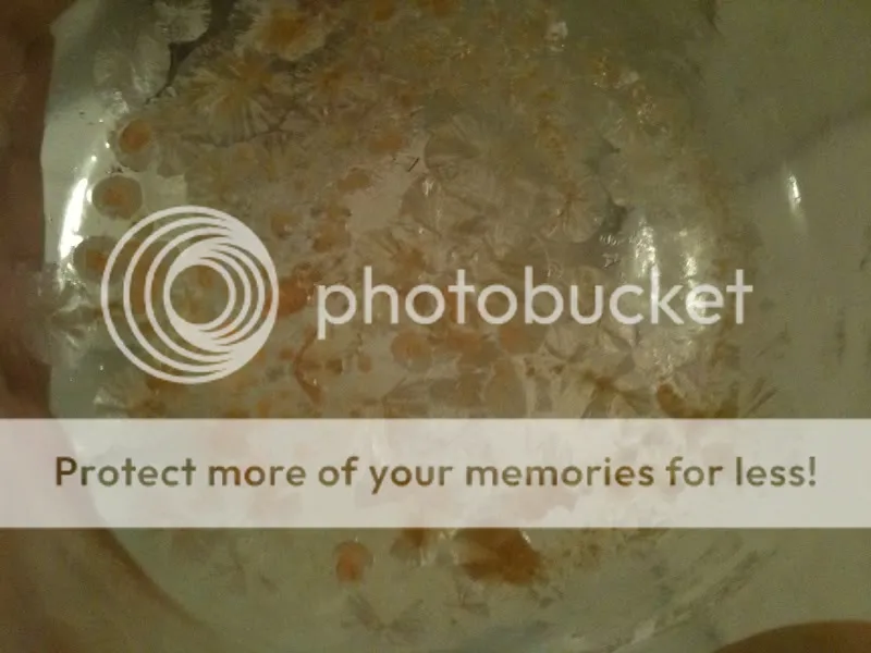 I then decanted the acetone into a glass pan and added some more acetone, a little less this time, and let it sit for a little while. I then decanted this into the pan and let the entire thing evap.