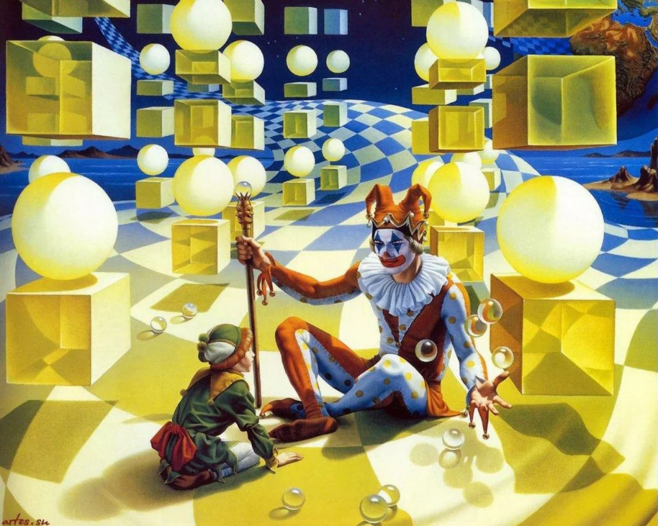 Not commenting much on the Jesters but just want to remark that it's very interesting that you were able to move freely around the place. Usually I am stuck in a position and just see it/experience all of it. The other day I was right on the verge of breakthrough, I was already having same OEV as CEV, everything was crystal clear in the golden room I was in, and at the end of it, I was somehow a bit further like right before the room takes a turn right and looked like a cave exit/portal to .. hyperspace? I know I tried to move there, only few more steps, but I couldn't. I was on 70-80mg and only 2 big hits, not sure how you don't get overwhelmed from meeting entities, jesters etc. As intense it was me being in that golden room, and as 'more real than our reality' felt, I had a thought I didn't quite wanted to meet anyone in there. And that room really felt empty, it was like I was an intruder and nobody knew I was there And now reading your post where you talk so casual about your experiences, makes me wonder how brave you must be lol. Sure, 80mg is way different than 40mg, but nevertheless, DMT is DMT, so I bet it was as intense for you too. You know what? It would be funny if when you were at that table with all the other jesters and you saw yourself as a jester too, that this would be a 'live dmt trip' connecting people vaping dmt in the same time from all over the world =) In a way, all these entities could be projections of our own mind, archetypes, collective unconsciousness (look into Carl Jung)... so maybe in your life, you are yourself a sort of wild-card personality, a jester