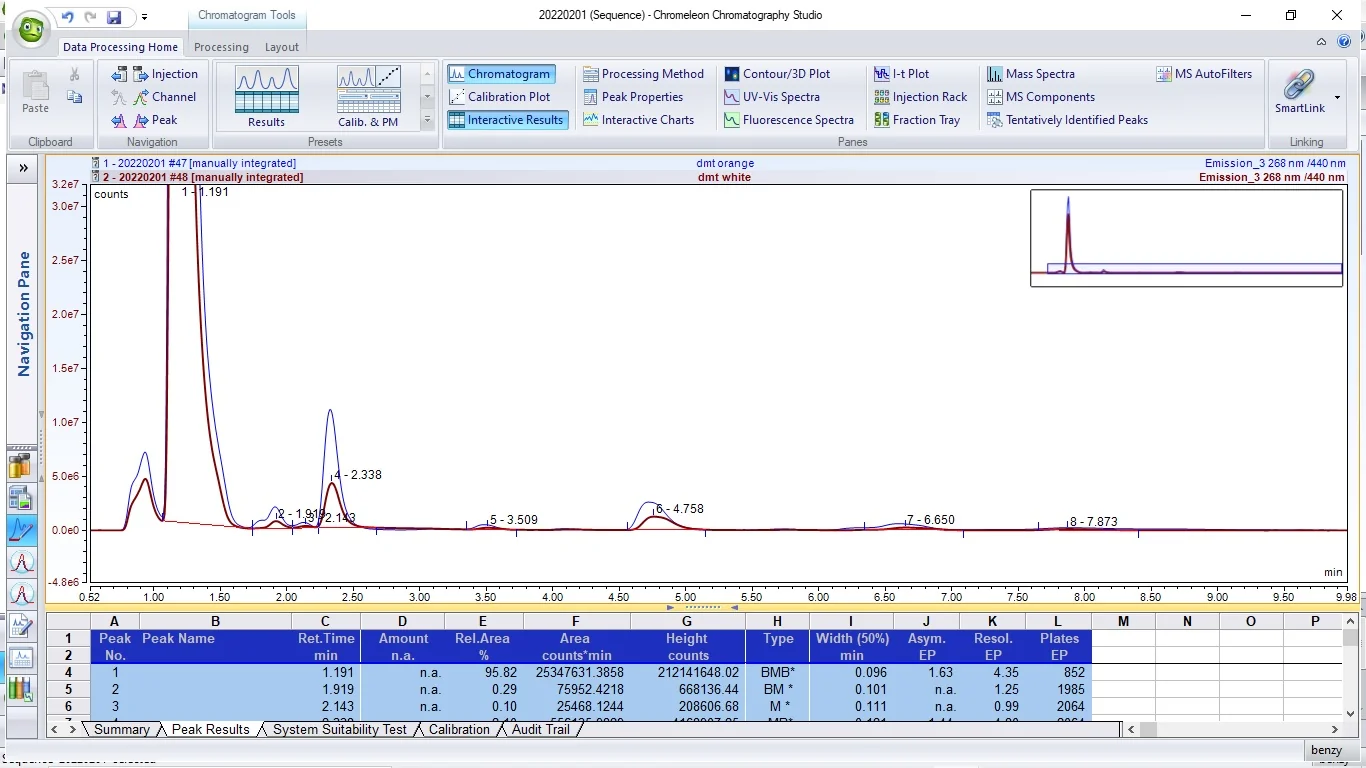 The fluor spectra for both white and orange were identical, same with the mass spectra. It's really a job for NMR, since autooxidation points to a loss of electrons, which as I mentioned, lack any appreciable mass.