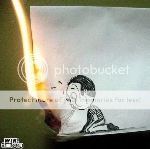 I didn't see the leaf burning but instead one of the flaps of the cardboard box that was my head...