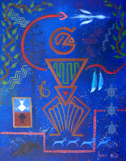Ok, enough talk, here's mine  . Actually I had painted this after an ayahuasca session. It's really more of an intuitive piece that reflects the impressions I was left with. While it really is a far cry from the actual visual experience it's the best I can do as far as recreating it in a practical, physical way. I really think it is good for the spirit to bring these impressions into our normal awareness as a way to integrate the experience. next...  As Within, So Without.