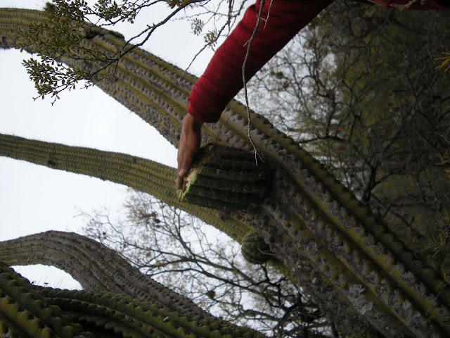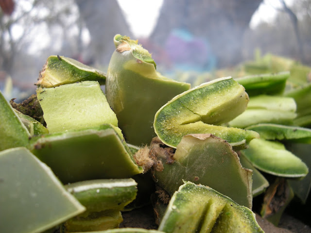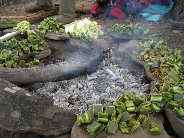 Looks like a cacti heaven  But he should not use tobacco to "facilitate healing" since it may actually disease the cacti with TMV, IMO it's best to just make a diagonal cut to avoid any water build-up and then simply let the mutilated part self dry, it will usually form a callous surface within a few days. Personally I prefer my cacti to be consumed raw after de-spining  I find it more of a challenge that way  Plus you'll easily know by the accumulating taste when enough is enough and therefore in most cases also avoid the stomach pains and pukes!  Mad, bad and dangerous to know.