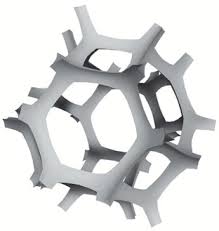 That's Silicon Carbide Foam with a most specific tetrakaidecahedron shape, commercialized as "Duocel":
